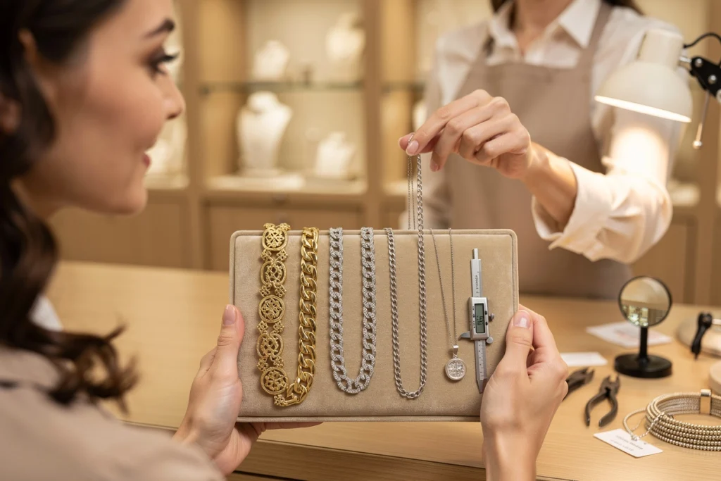 Avant de sélectionner une chaîne, il est important de prendre en compte sa longueur. La taille de la chaîne influence la position du pendentif sur le buste et l’harmonie générale avec la tenue. Même si la longueur standard d’une chaîne est d’environ 46 cm, plusieurs tailles existent afin de s’adapter aux préférences et aux styles vestimentaires. Pour compléter un pendentif, il est également possible de s’inspirer d’une sélection de colliers élégants afin de choisir une chaîne qui mettra parfaitement en valeur le bijou et la silhouette.